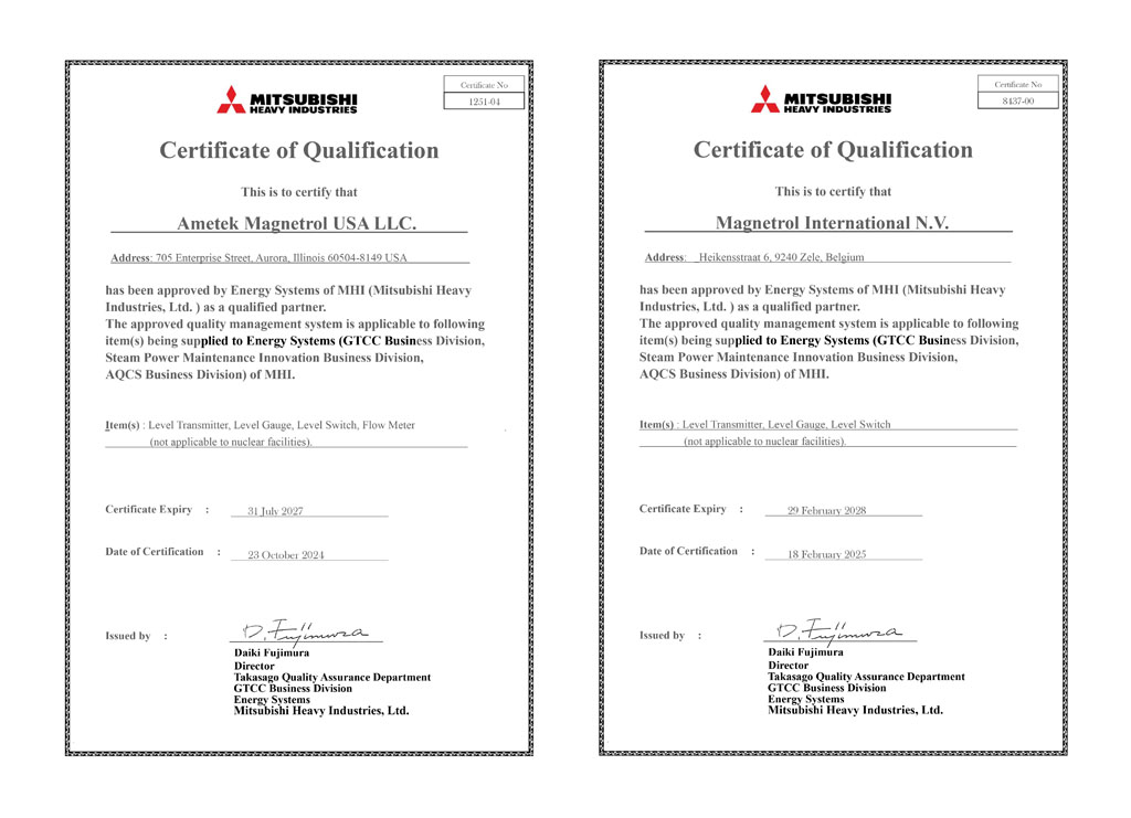 Magnetrol approved supplier for Mitsubishi Heavy Industries