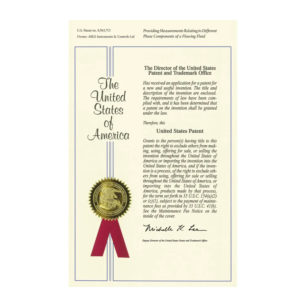 Did you know? In 2016 Able were granted a patent for the MudMaster by the UK Intellectual Property Office (Patent No: GB2481666) and the United States Patent and Trademark Office (Patent No: 8,965,713) – “Providing measurements relating to different phase components of a flowing fluid”. View Certificate