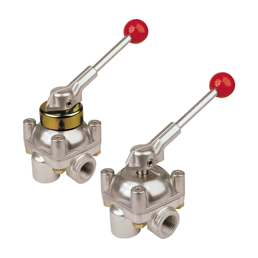 - Manual pneumatic directional control: Simple and reliable manual operation for switching compressed air in industrial systems.