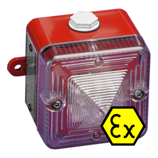Intrinsically safe BEKA flashing beacon with IP66 protection and 0.5 Joule xenon flash. The BA386 beacon produces a bright flashing warning signal and is available with a red, amber, green, blue or white output. The sounder can be used with a beacon to form a combined audio visual alarm in which the sounder may be silenced for a predetermined time by an external ‘alarm accept’ contact.