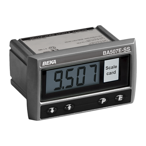 96 x 48mm general purpose panel mount BEKA BA507E-SS loop powered 4-20mA indicator with stainless steel ‘rugged’ enclosure and 4 x 15mm digits. The BA507E-SS has IP66 protection and includes printed scale or tag. Optional specs can be chosen below: